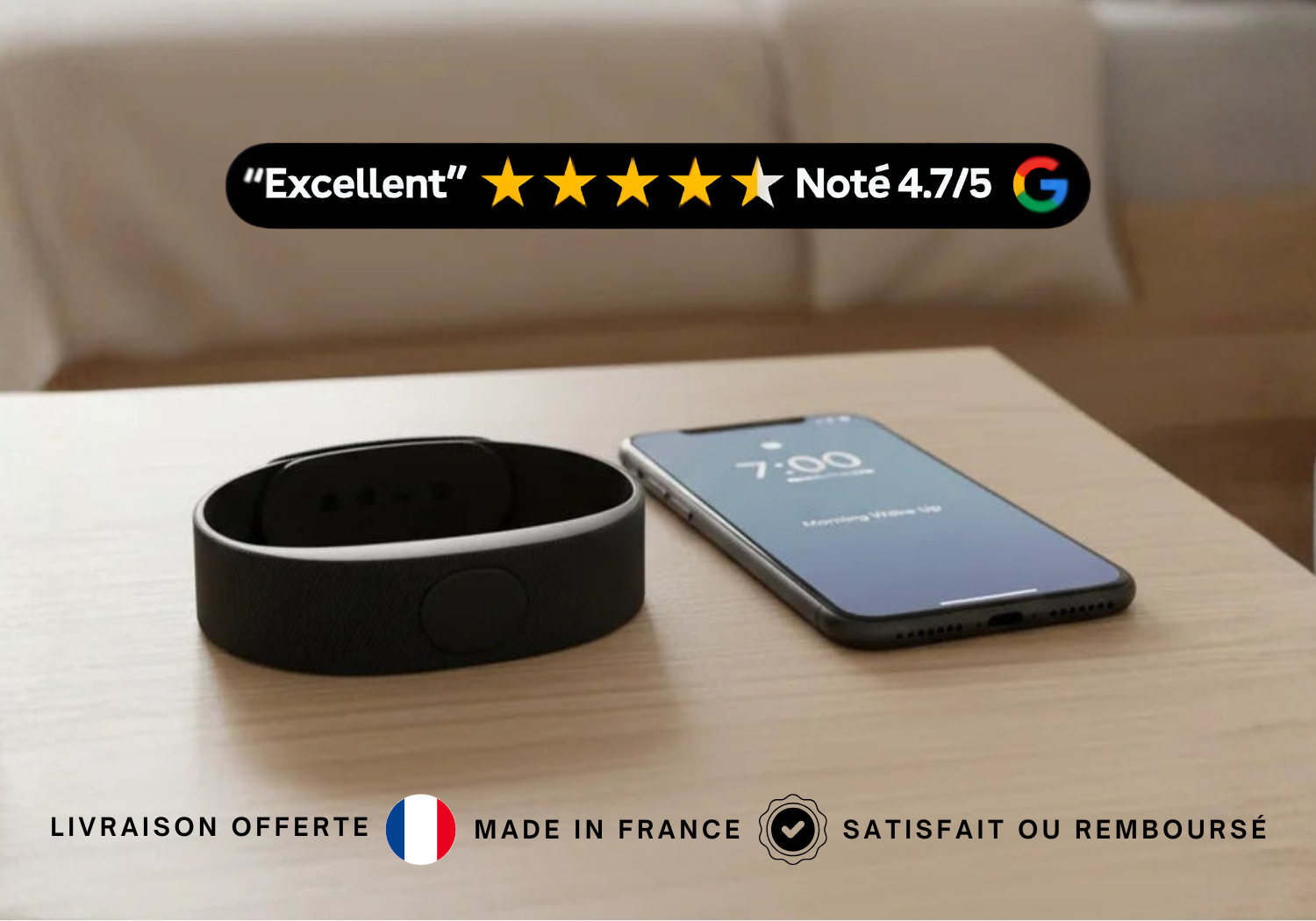 Un bracelet réveil vibrant conçu pour remplacer les alarmes agressives par un réveil doux, naturel et respectueux de votre rythme.