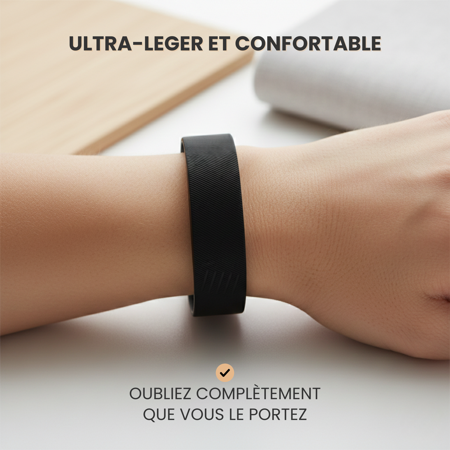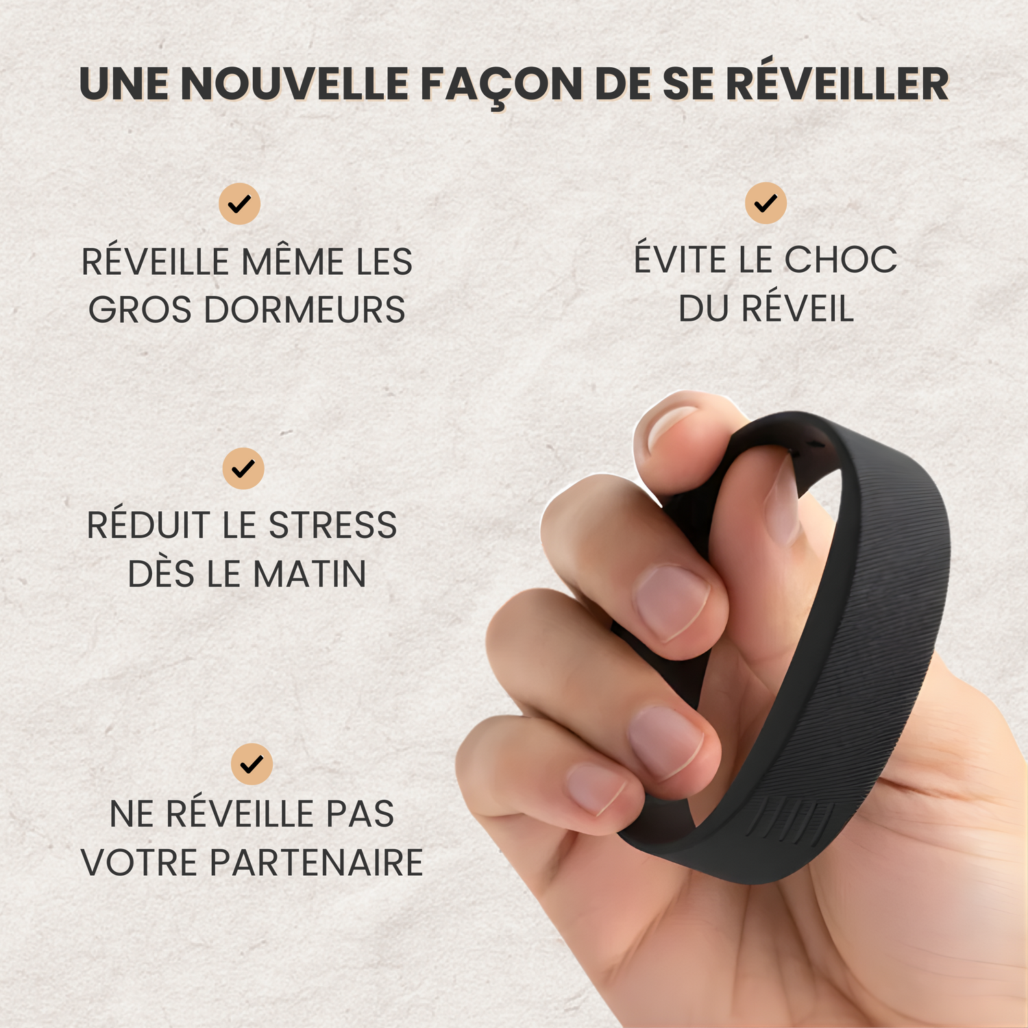 Un bracelet réveil vibrant conçu pour remplacer les alarmes agressives par un réveil doux, naturel et respectueux de votre rythme.